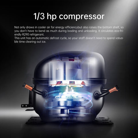 - Commercial refrigerator with Cubigel compressor, Carel controller, Fan cooling system, automatically defrost, need no extra tube for condensing water.