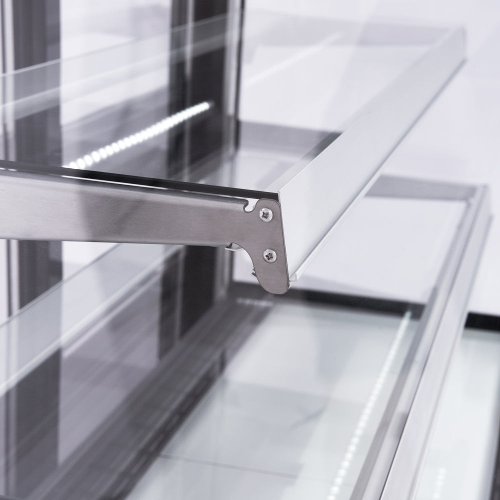 | Lighting | Internal LED on top and under each shelf |