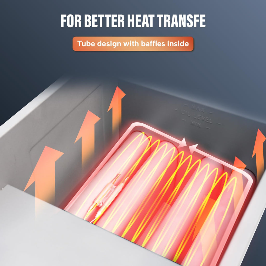 • User-Friendly Operation: Intuitive mechanical knobs for precise temperature control and easy oil drainage with built-in filtration.