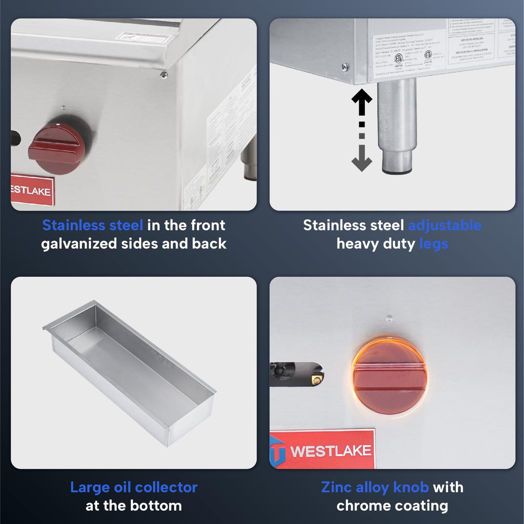 WESTLAKE Commercial Gas Griddle Features: