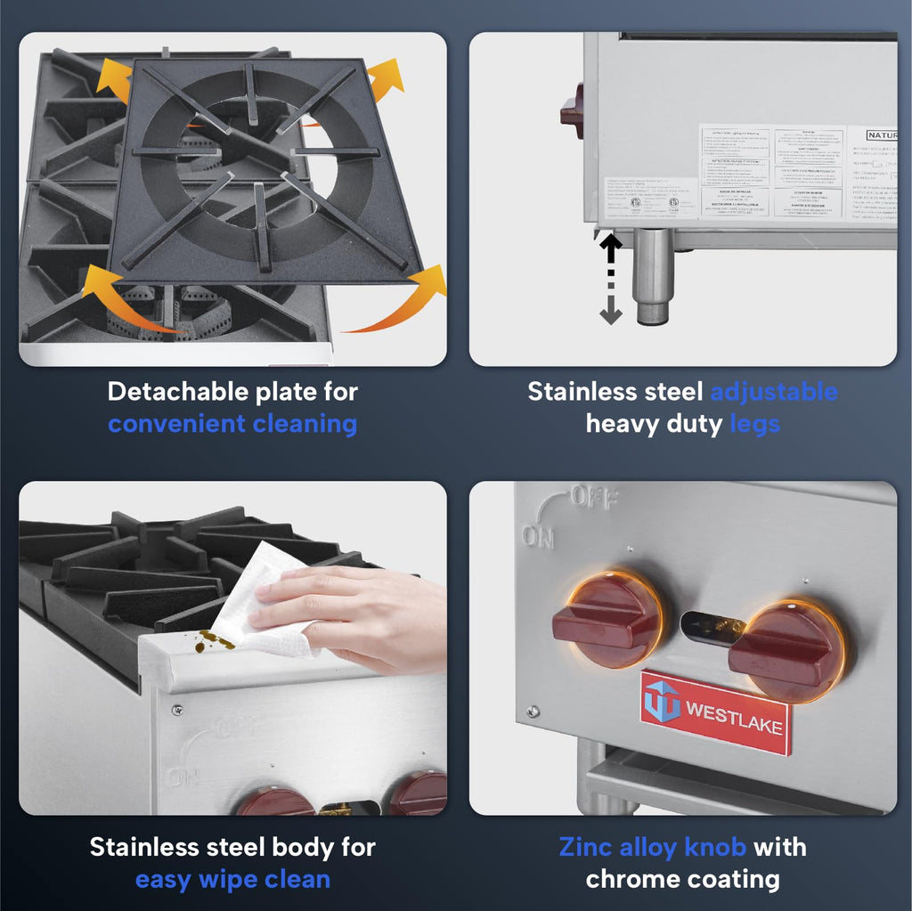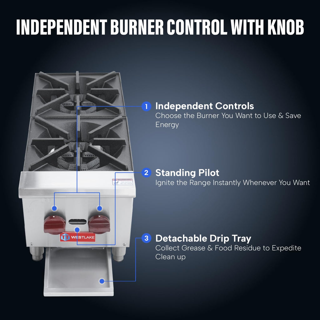 Commercial Hot Plate, WESTLAKE 12″ Countertop Gas Range Restaurant 2 Burner Gas Stove with 50,000 BTU.