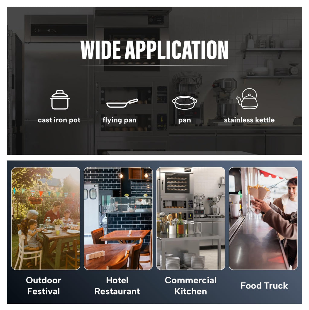 - Compact and Portable Design: Featuring a space-saving countertop design, this stove is lightweight and easy to move, making it suitable for small kitchens or spaces requiring flexible arrangements. The corrosion-resistant stainless steel exterior ensures durability and makes cleaning effortless, perfect for long-term commercial use.