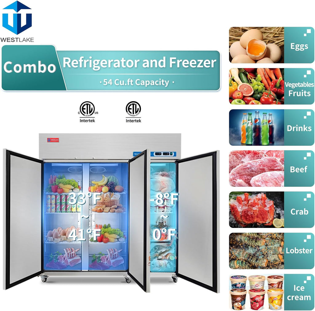Commercial Refrigerator Freezer Combo 3 Door 54 Cu.ft Reach-In Solid Door Upright Fridge Freezer Combination, Upright Commercial Freezer.