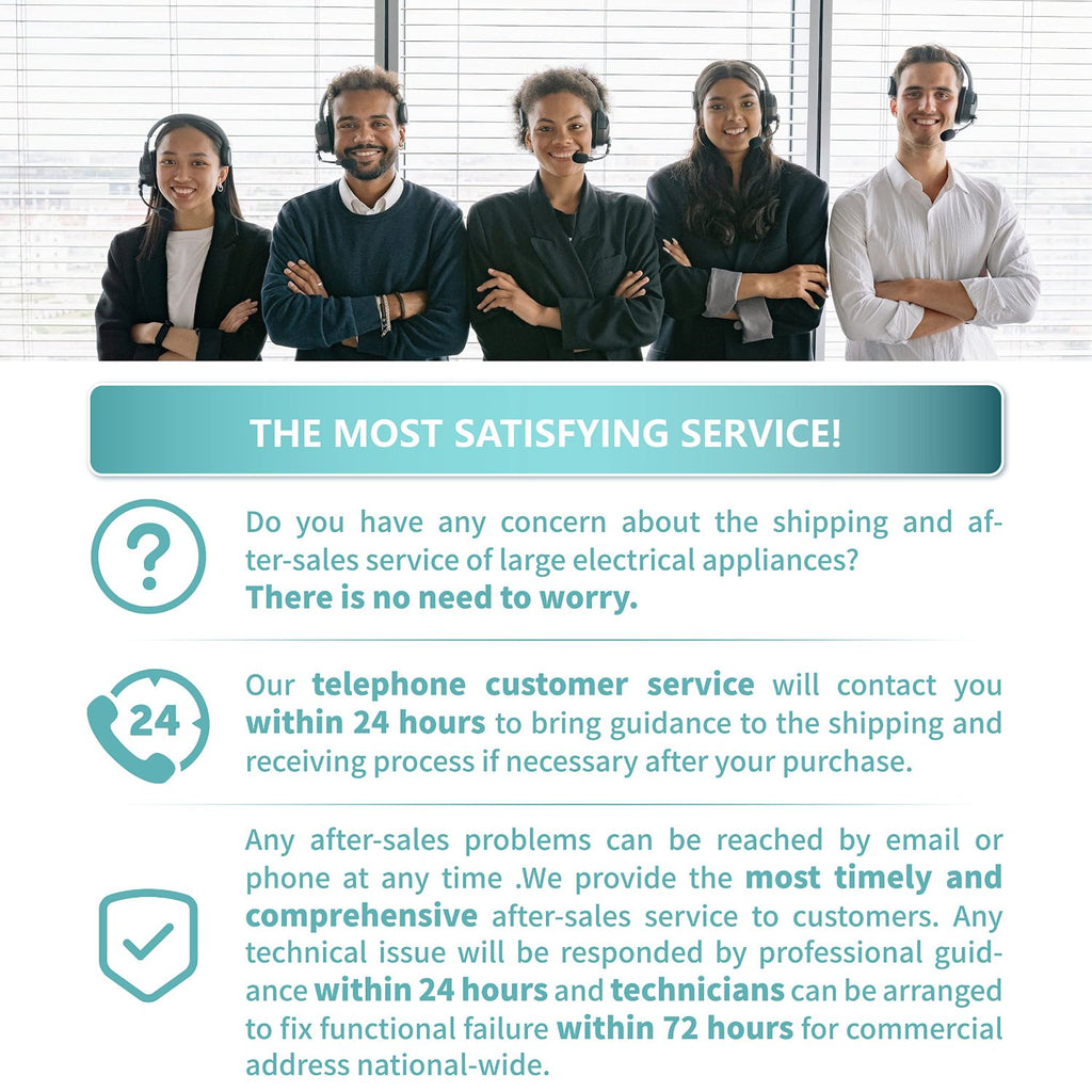 - Fully Guaranteed Maintenance Service: 2-year warranty on labor and parts. We have professional customer service personnel and engineers to answer your questions online. Welcome to contact us by phone or email. *Since the products are transported by truck, the carrier provides curbside handover only.