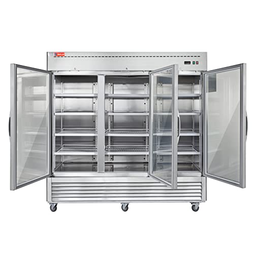 - Professional design: Reach-in 3 solid door designs. Comes with 12 shelves, 155 lbs loading capacity per shelf, and 72 cubic feet of storage space. The unit includes 4″ casters for easy mobility.