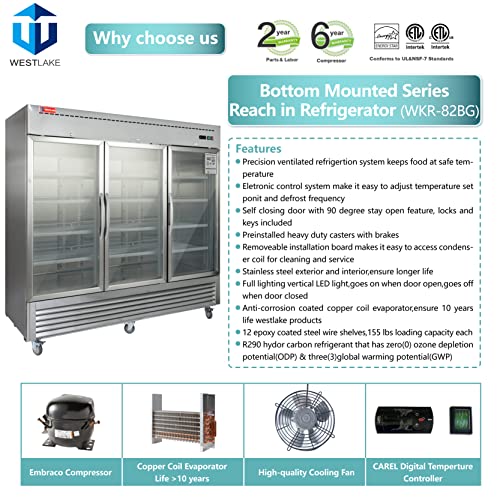 Be the first to review “Commercial Refrigerator 3 Glass Door, WESTLAKE 82″ W Merchandiser Reach-in Cooler Upright Fridge 72 Cu.ft for Restaurant, Bar, Shop, Retail” Cancel reply