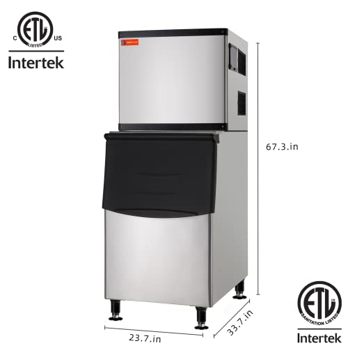 Westlake Commercial Ice Machine, Full Cube Ice Maker Machine 500 lbs Ice with 375lbs Storage Capacity