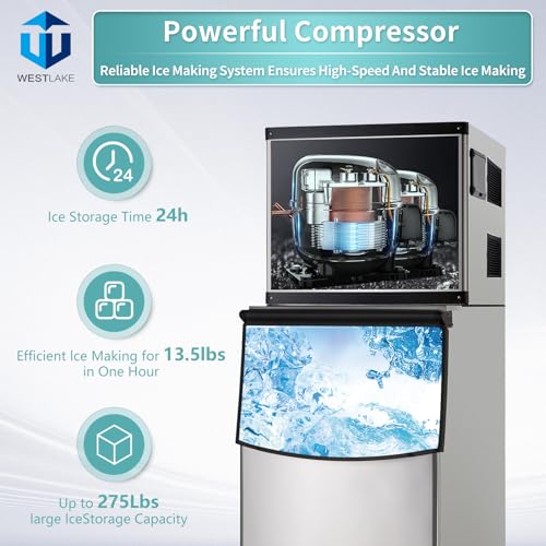 Westlake Commercial Ice Machine, Full Cube Ice Maker Machine 350 lbs Ice with 230lbs Storage Capacity